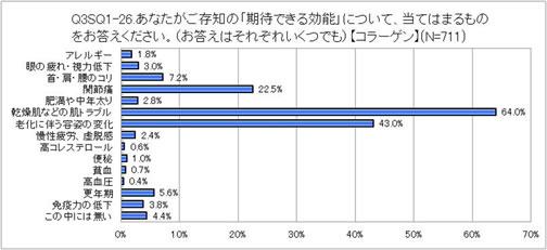 コラーゲンの効能理解がある、と答えた方に、その期待される効能に近いものを選んで